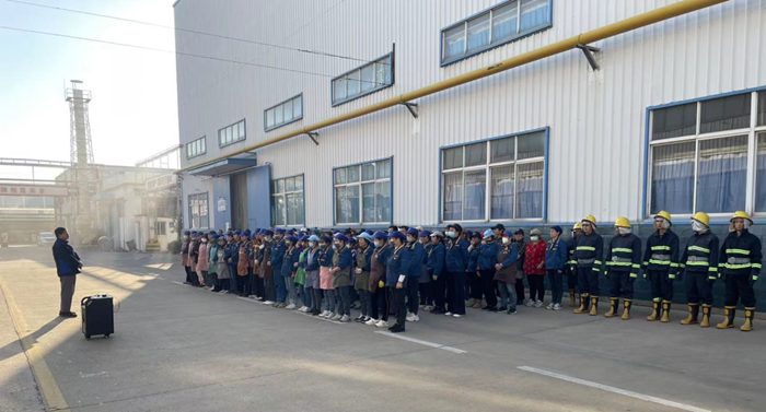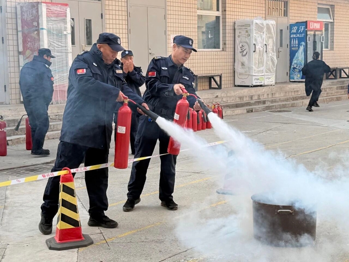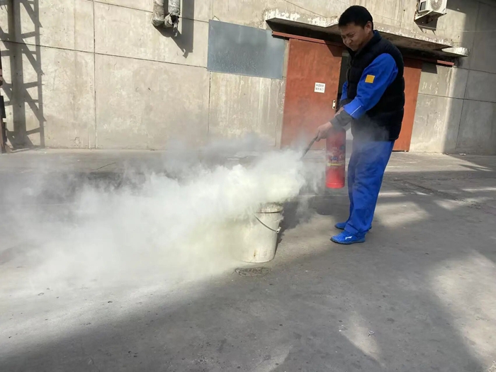 “提、拔、握、壓——對準火源根部掃射!”在演練現場,安全員手持滅火器,結合冬季干燥、火情易蔓延的特點,向員工講解操作要領,強調冬季滅火器維護重點。