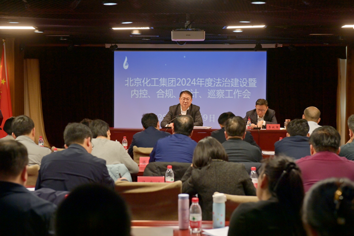 12月9日下午,北京化工集團召開2024年度法治建設(shè)暨內(nèi)控、合規(guī)、審計、巡察工作會,黨委書記、董事長陳宇作總結(jié)講話,副總經(jīng)理李效軍主持會議。
