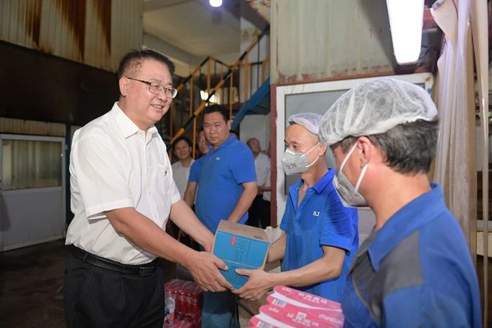 7月9日下午,北京化工集團黨委書記、董事長陳宇,黨委副書記吳瑞峰,黨委常委、副總經(jīng)理韓寶海,黨委常委、紀委書記常延輝來到華騰橡塑,進車間、到班組,親手將一份份清涼飲品送到一線職工手中。慰問過程中,陳宇詳細了解一線職工工作生活情況,對大家冒著高溫酷暑,以高度的責任感和飽滿的工作熱情堅守一線給予充分肯定。陳宇叮囑大家既要高質(zhì)量完成好本職工作,又要時刻關(guān)注身心健康,集團各級黨組織和工會組織要從各方面確保防暑降溫工作落到實處,保證干部職工健康安全。